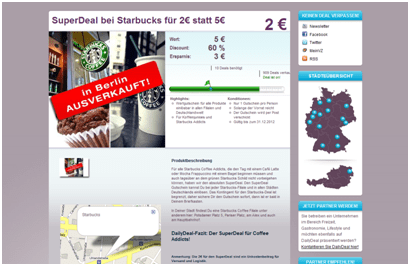 En Allemagne, c’est la Fièvre. Les financements sont enclenchés. 4 sociétés se sont lancées dans la course au leadership : Tagesangebote.de, Dealmob.de, et DailyDeal.de surtout CityDeal.de. Les media spécialisés se font le relais de ce phénomène. Voir Exciting Commerce (ici) ou Deutsche Startups (ici).
