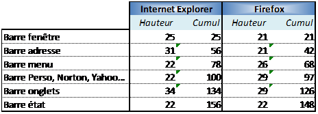 Le tableau ci-dessus compare la hauteur de chaque composant affiché par les deux principaux navigateurs (dans leur dernière version).