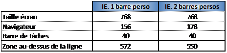 1. @Philippe Jaquet : La barre d’état est affichée par défaut à l’installation d’Internet Explorer. Je pense qu’il faut donc la décompter dans le calcul du nombre de pixels disponible pour designer les écrans.
