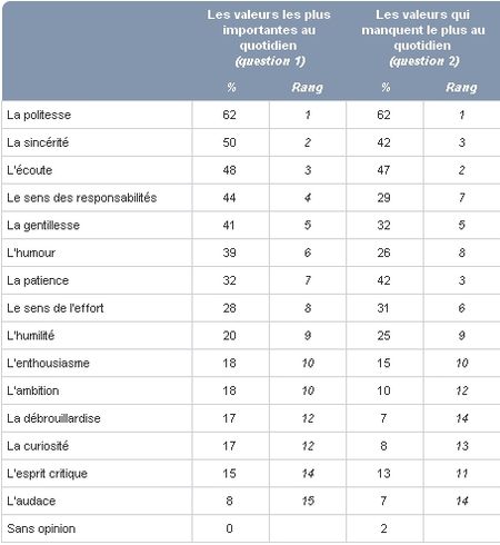 - Article de Grégory Pouy sur les valeurs importantes au quotidien des français.