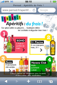 Voici Pernod, le rival éternel. Les recettes sont proches : une campagne presse (je n’ai pas vu d’autres media activés), un code 2D et un site optimisé pour le mobile.