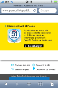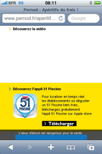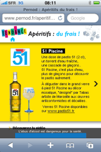 Je trouve cette campagne Pernod intéressante. L’exécution est efficace. La création de trafic depuis la page presse reprend une description rapide du contenu accessible au bout du flash. Le site mobile est léger. La navigation est rapide.